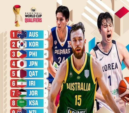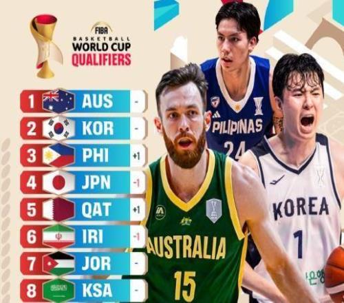 世预赛第二窗口期亚洲区实力榜:中国男篮第11,仅高于中国台北