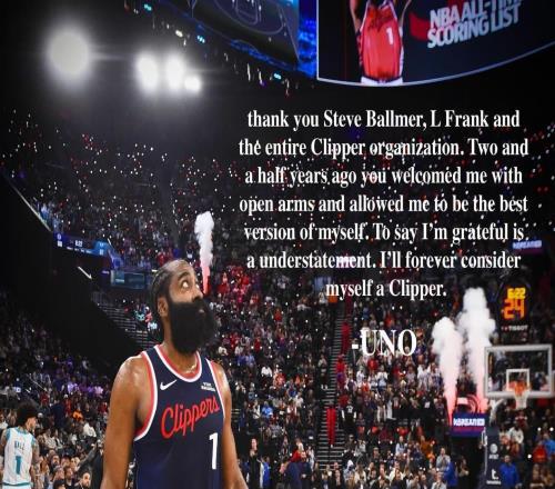 哈登:我在快船度过愉快的2年半,不想让自己拖累快船的未来
