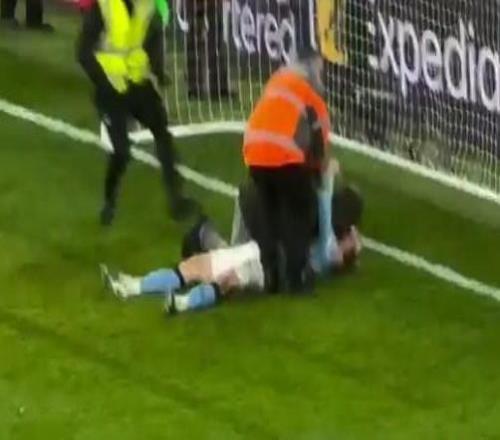 其实我只想安静地躺会儿,在昨日比赛最后时刻哈兰德被一球迷紧抱