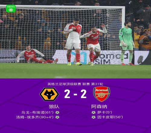 阿森纳2比2狼队,客场两球领先却遭补时绝平,深究枪手三大问题