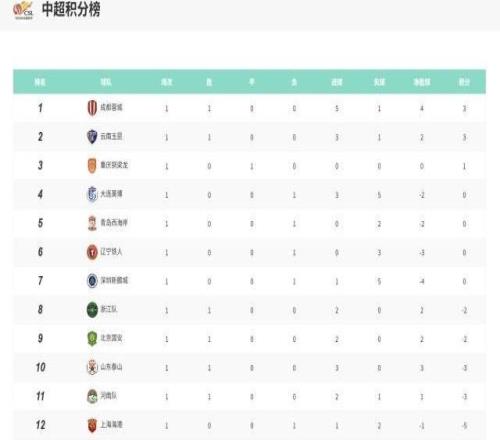 2026中超第1轮战况+积分榜:蓉城领跑海港爆冷