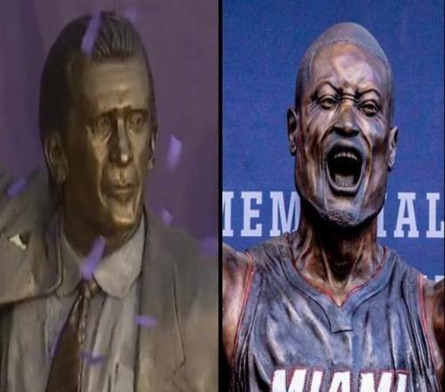 莱利湖人雕像正式揭幕!韦德到场祝贺美媒调侃两人雕像差距明显