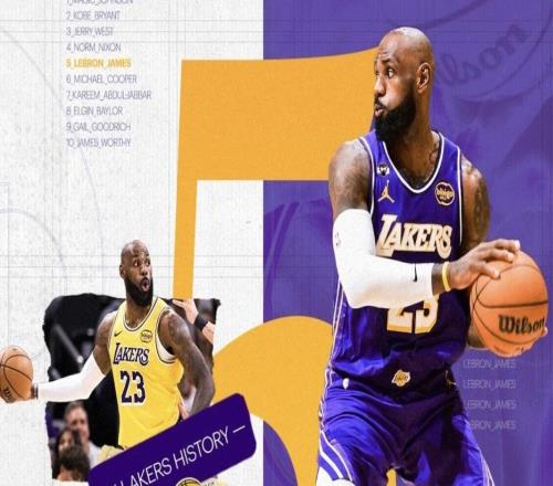 詹姆斯湖人生涯总助攻数达3669次,升至队史助攻榜第五位